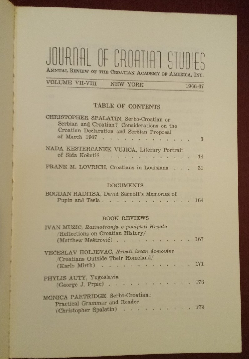 Publisher: New York: Croatian Academy of America 1967. (Journal of Croatian Studies.)