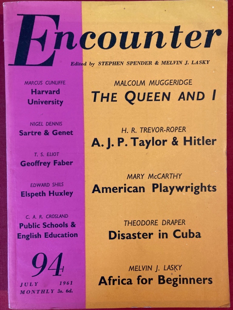 Description: for sale is a complete issue of Encounter for July 1961, contains also essays by Malcolm Muggeridge (Queen and I), T S Eliot (Geoffrey Faber), Trevor-Roper etc