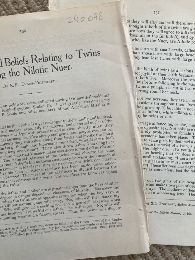 Description: 10p original print, removed from binding, as published in Uganda Journal, a little fragile but original, would benefit from a new cover
