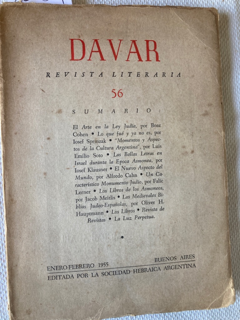 Davar. Revista Literaria No: 56. Enero - Febrero 1955.