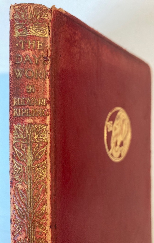 Description: 406p burgundy full leather, spine a bit scuffed, gilt lettering to spine (bright), gilt elephant head and swastika medallion to front board, all edges gilt, ribbon marker, text clean and unmarked, a well preserved copy
