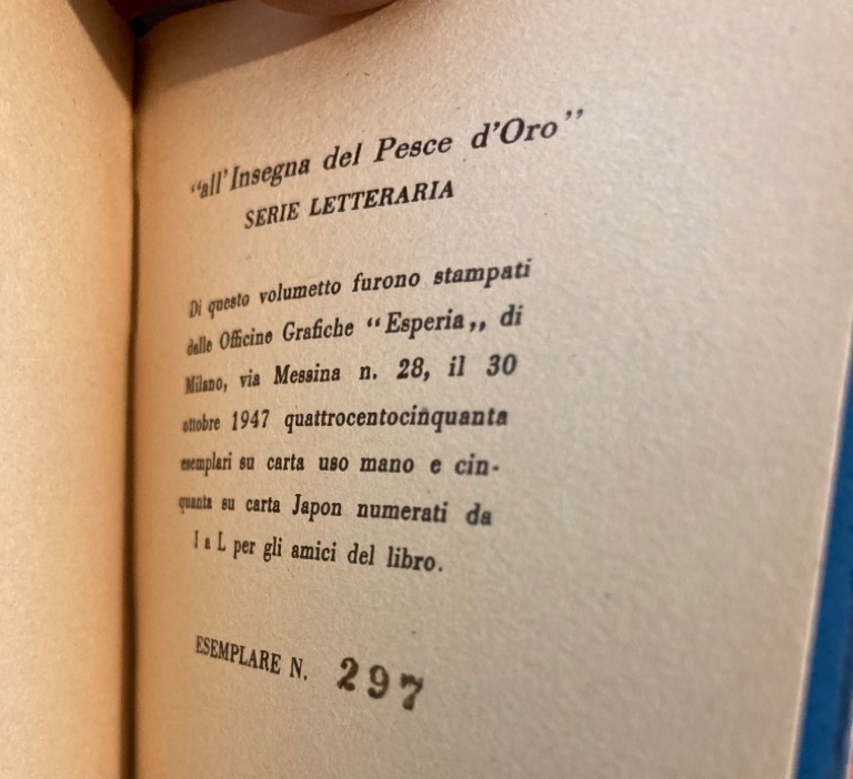 Publisher: Milano: All'Insegna del Pesce d'Oro 1947.