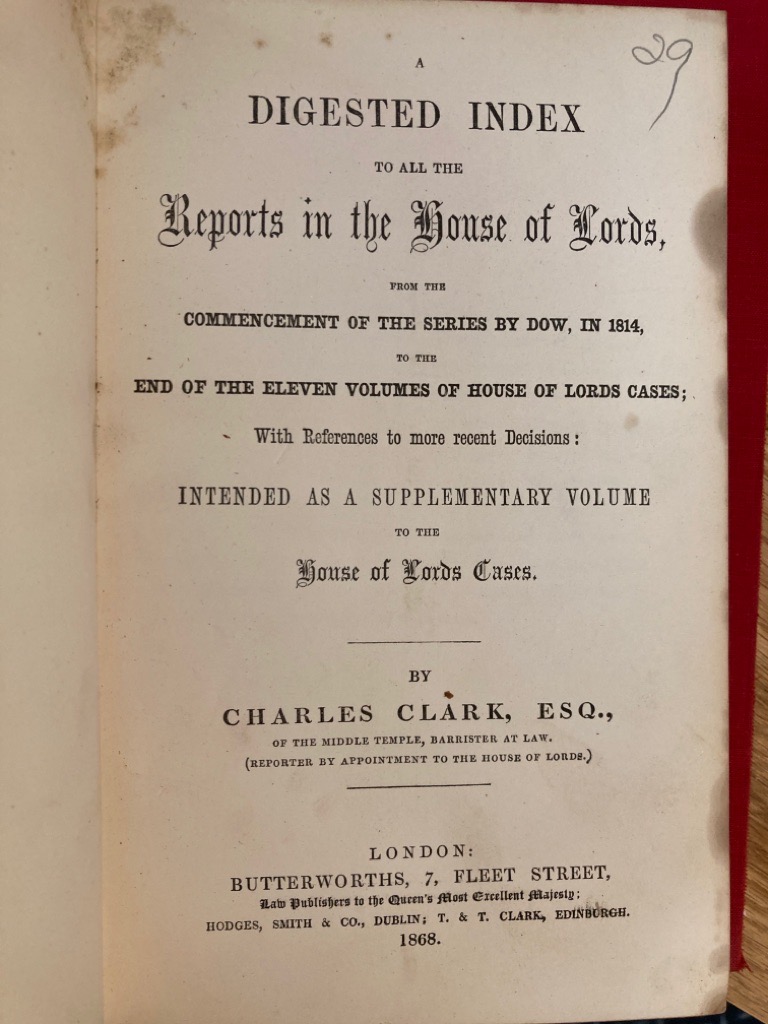 Publisher: London: Butterworths 1868.