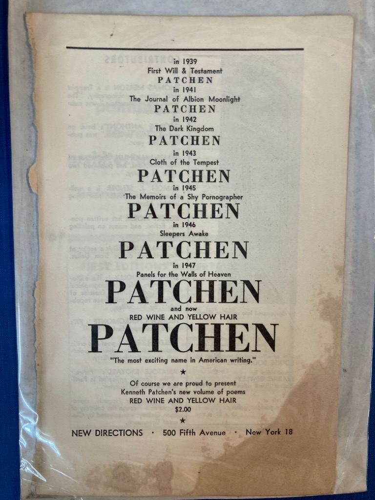 Description: full page advert from Partisan Review 1947, corner soiled, oncludes table of contents of the journal "The most exciting name in American writing"