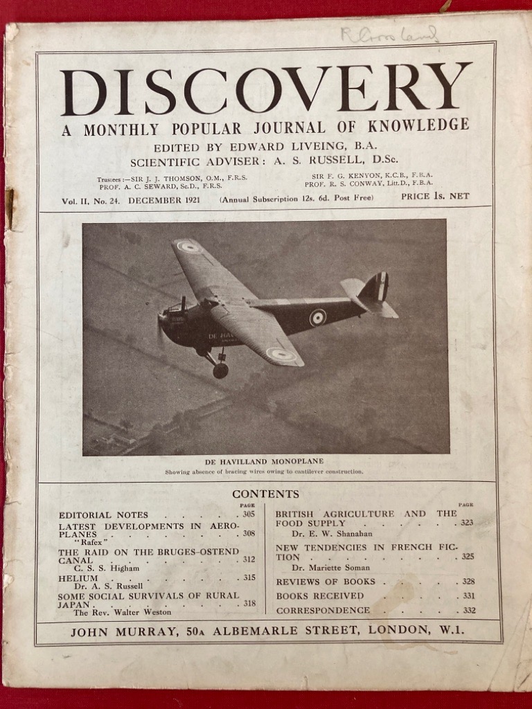 Description: 305-322p large grey stapled booklet, a worn copy, original, staples rusty, b/w illustrations, with plenty of period adverts, Haviland Monoplane to cover