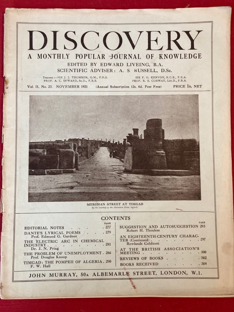 Discovery. A Monthly Popular Journal of Knowledge. Volume 2, Number 23, November 1921. Dante\'s Lyrical Poems, The Electric Arc in Chemical Industry.