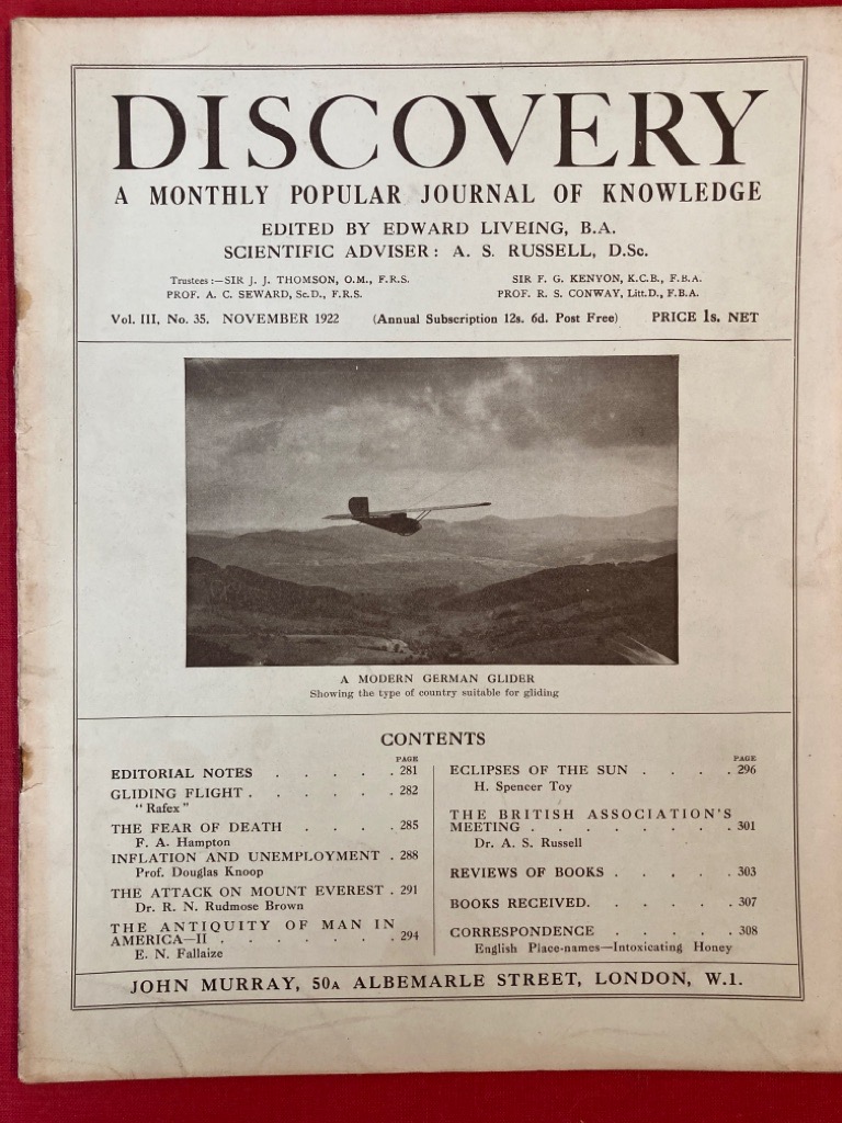 Description: 281-308p large grey stapled booklet, original, staples rusty, b/w illustrations, with plenty of period adverts condition, Modern German Glider plane to cover