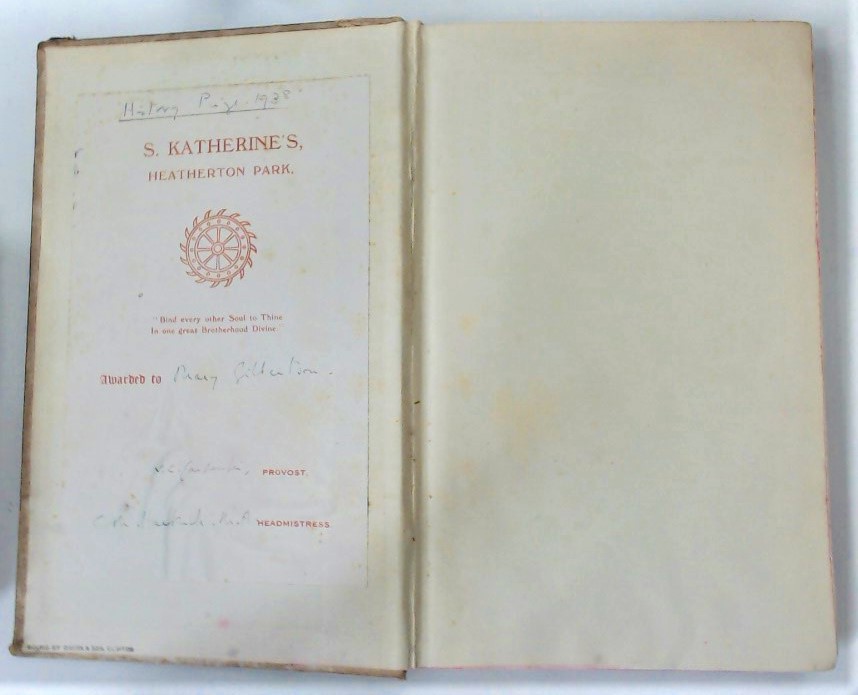 Description: x 334p hardback, beige cloth with gilt wheel design, wear to spine and cover edges, spine detaching, binding a little loose but intact, pages clear and bright, 'History Prize 1938' label to the inside cover