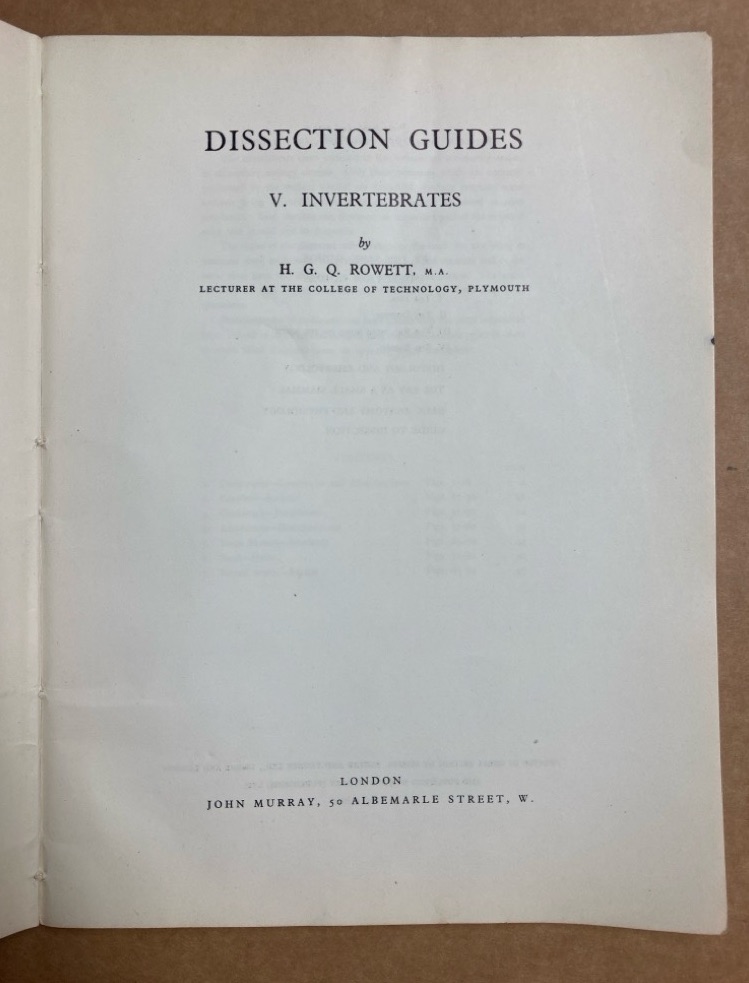 Publisher: London: Murray 1970. (Dissection Guides.)