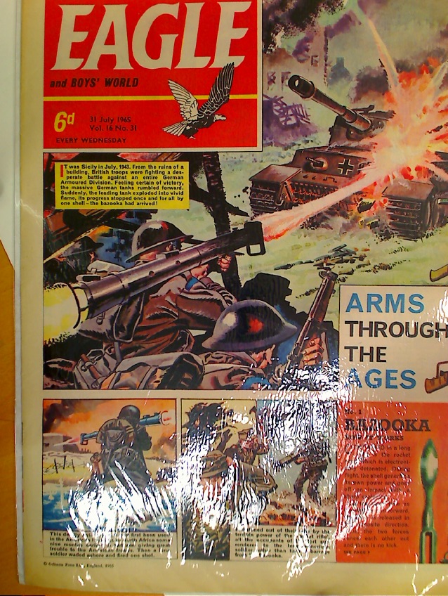 Description: 20p comic, still bright and fresh, no horizontal crease, Dan Dare in The Singing Scourge and Arms Through the Ages No. 1 The Bazooka