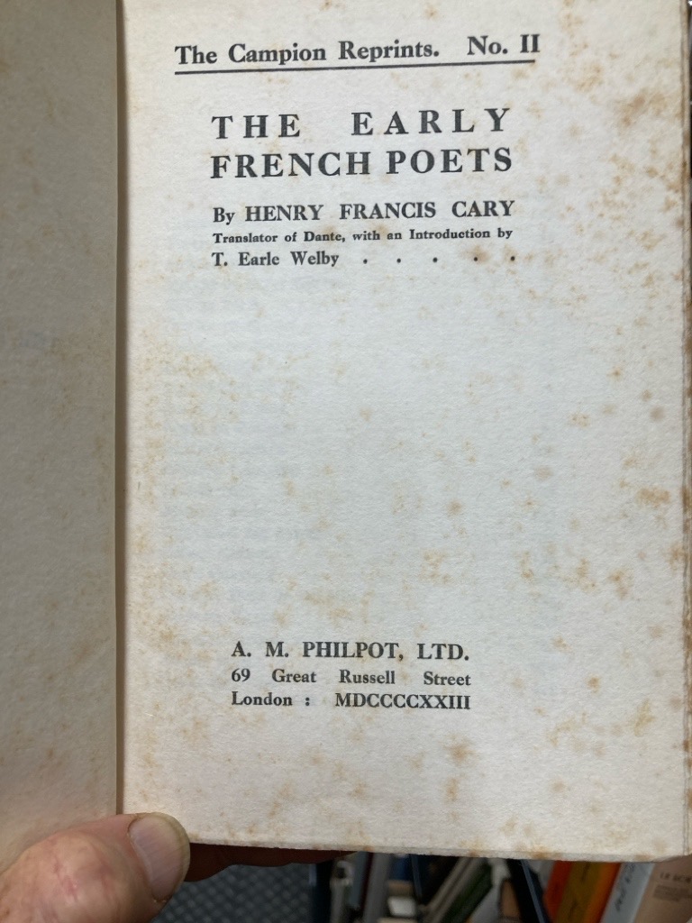Publisher: London: Philpot 1923. (Campion Reprints)
