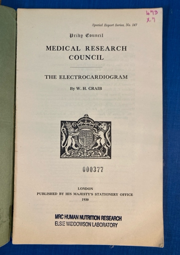Publisher: London: HMSO 1930. (Medical Research Council Special Report Series.)