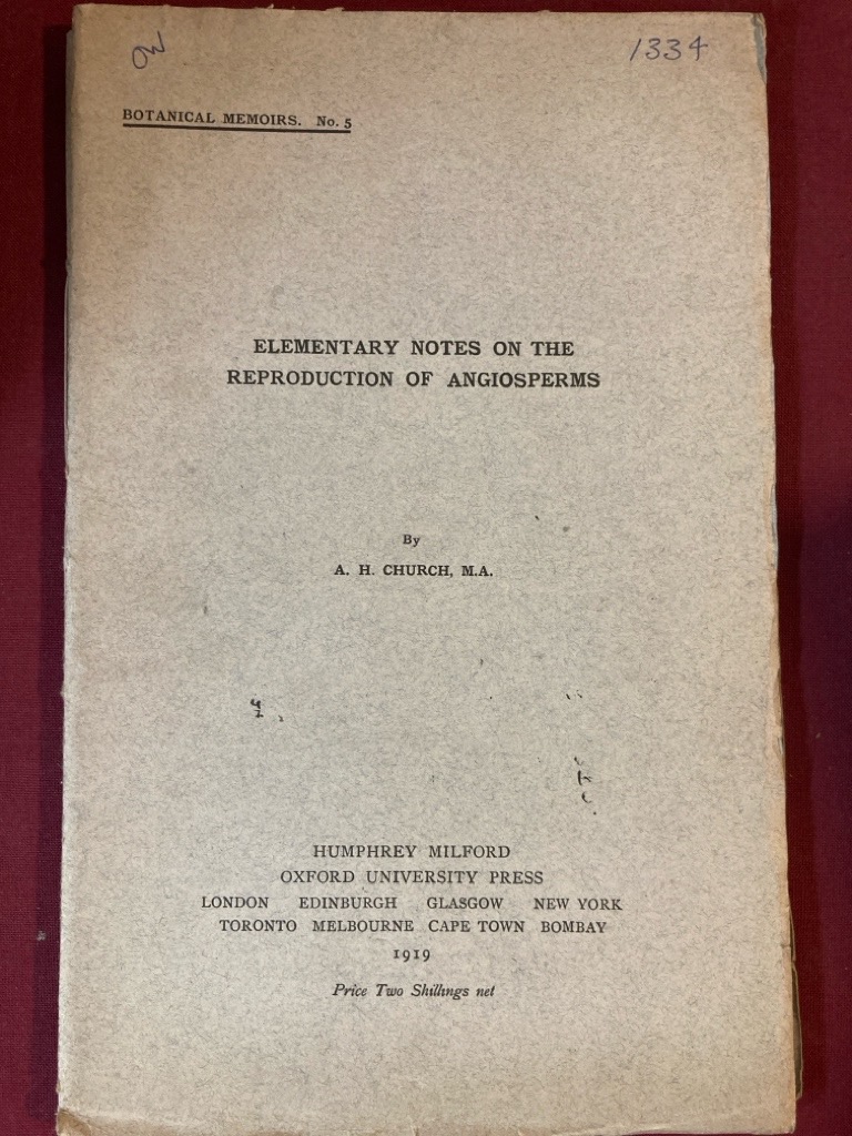 Publisher: Oxford University Press 1919. (Botanical Memoirs.)