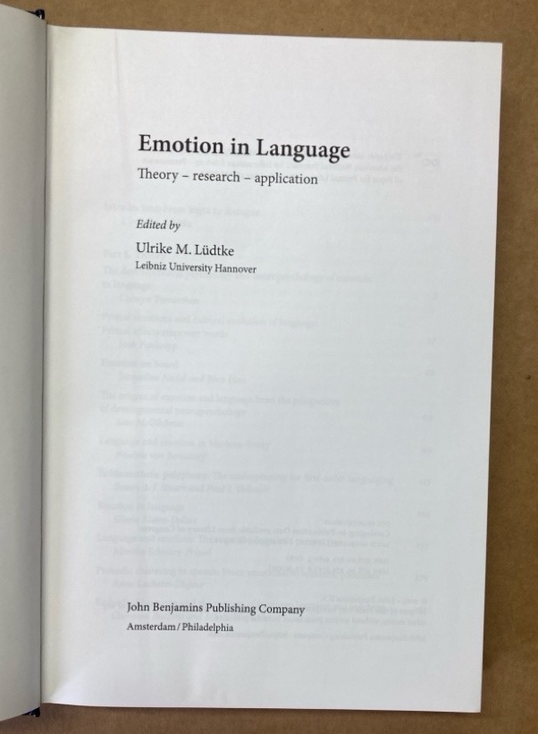 Publisher: Philadelphia: Benjamins 2015. (Consciousness & Emotion Book Series.)