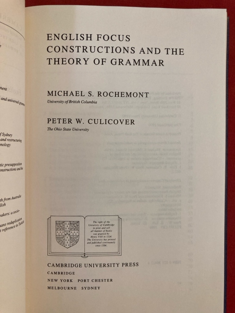 Publisher: Cambridge University Press 1990. (Cambridge Studies in Linguistics.)