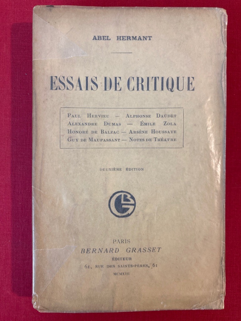Description: 404p original paperback, glassine jacket, essays on Dumas, Zola, Balzac, Guy de Maupassant and others, nice fresh copy, date on cover is 1913