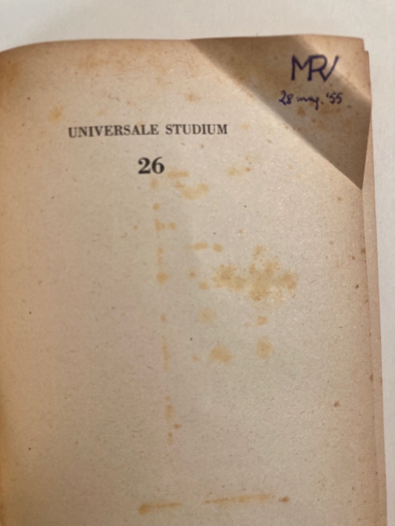 Publisher: Roma: Studium 1953. (Universale Studium.)