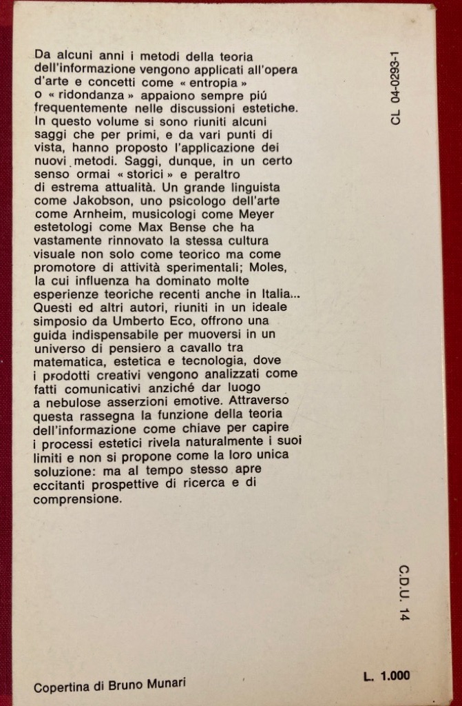 Description: 205p white paperback with black dot design, a nice tight copy, no names or stamps, texts by Jakobson, Arnheim, Moles, Bense, etc and attractive copy