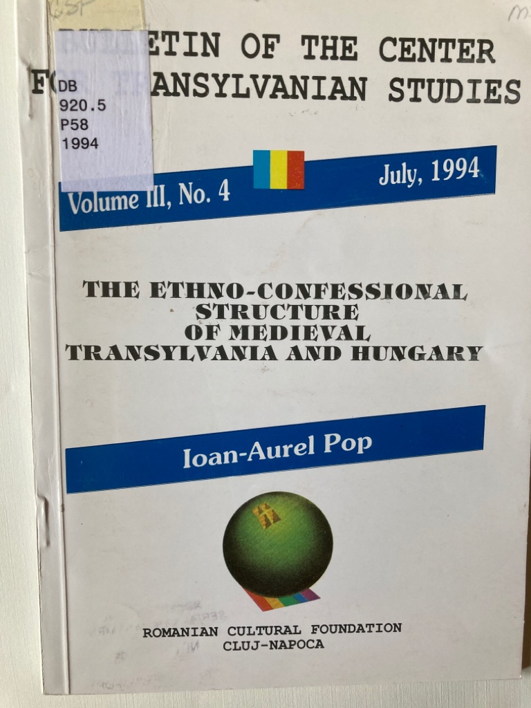 Description: 48p offprint, booklet, ex library, text clean, published in the Bulletin of the Center for Transylvanian Studies