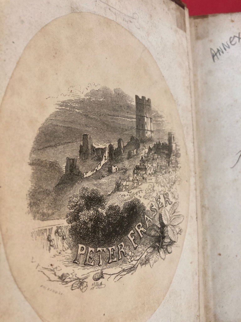 Description: 414p bound in half cloth, minor library marks, large illustrated engraved bookplate (Peter Fraser), without a title page, title and imprint assumed from Worldcat, pages un-trimmed, original edition, Volume 2 ("Alter") only
