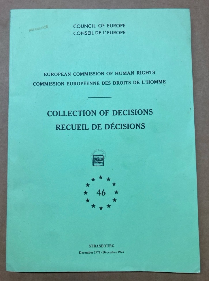 Publisher: Strasbourg: Council of Europe 1974. (Council of Europe.)