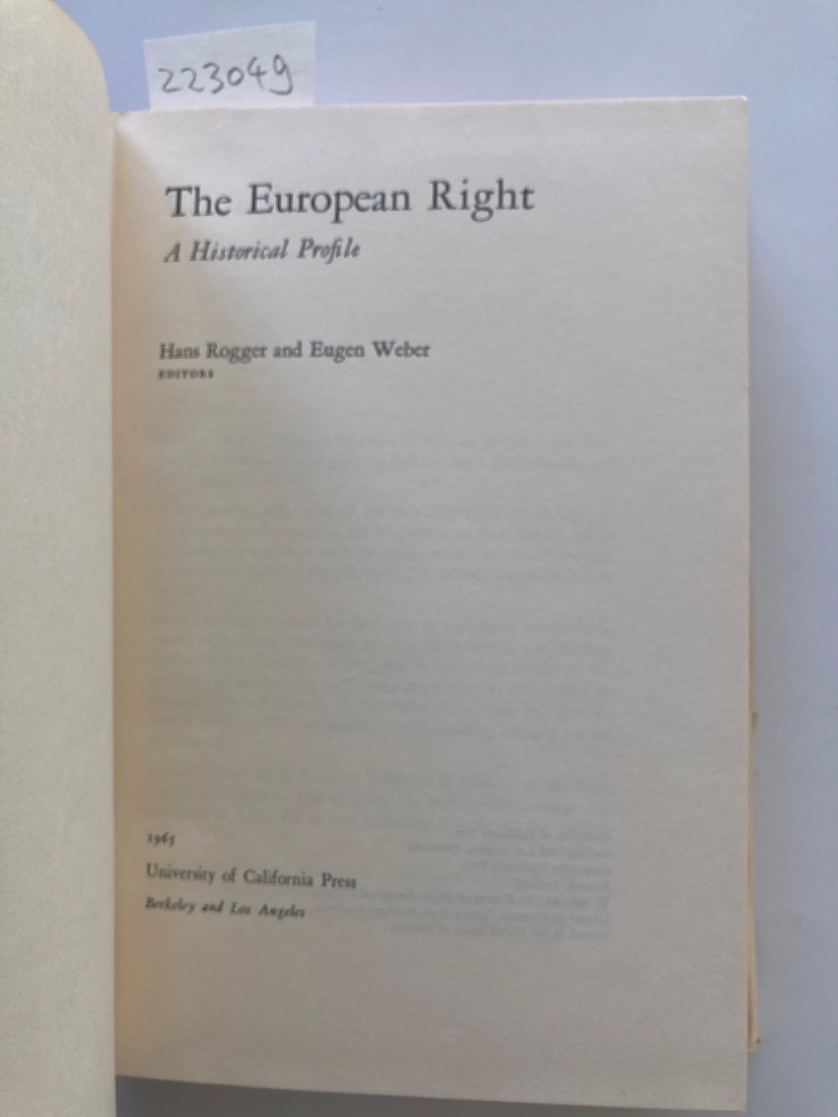 Description: 589p hardback, somewhat worn dustjacket, a clean and tight copy without names or stamps, no annotations, well preserved, first edition, includes papers by Ernst Nolte on Germany, Weber on France, Saladino on Italy, Deak on Hungary, etc