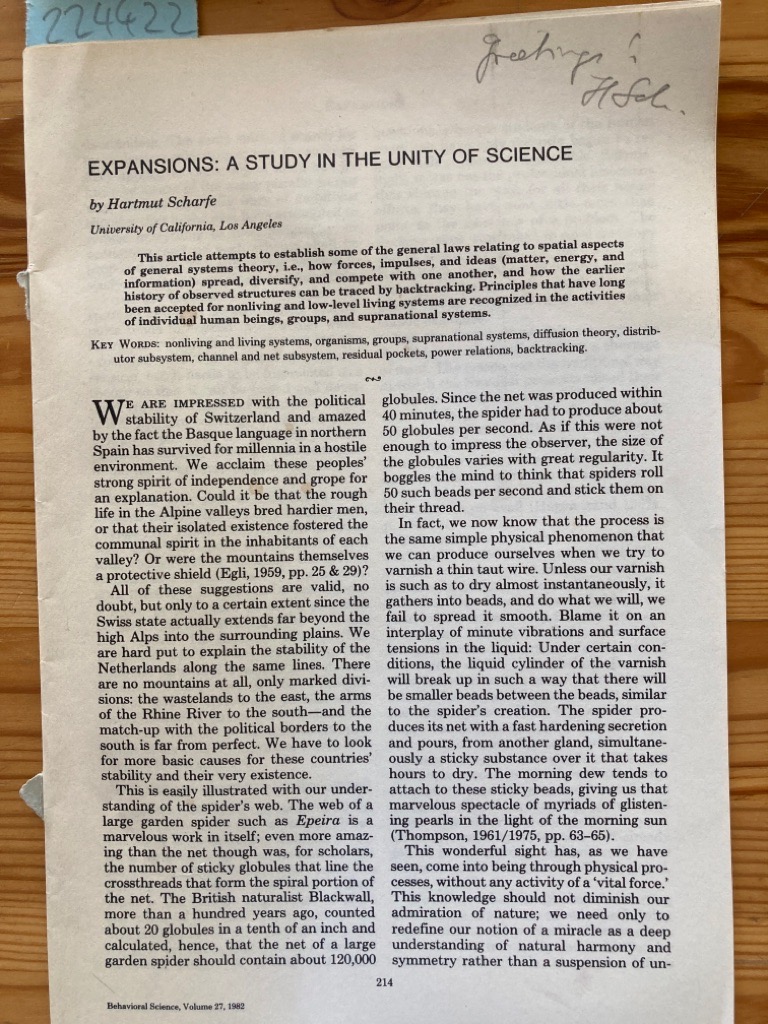 Description: 34p stapled pamphlet, no cover, authorial greetings, with tables and illustrations, an expansive theory indeed: Structuralism in full bloom