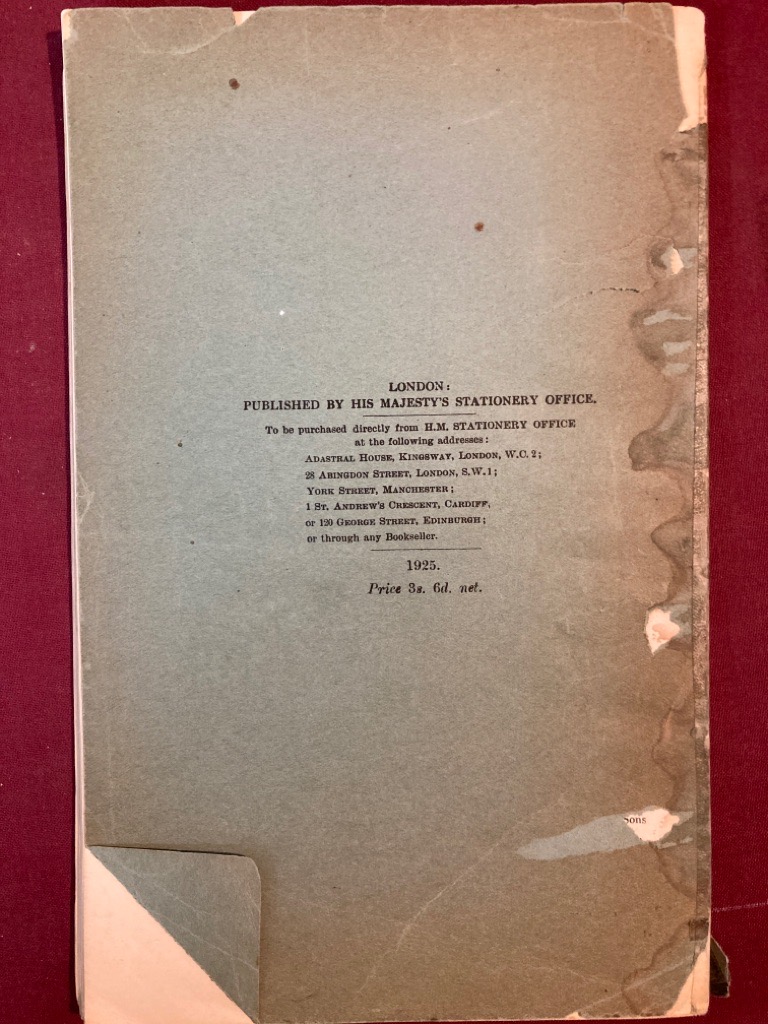 Publisher: London: HMSO 1925. (Medical Research Council, Special Reports Series.)