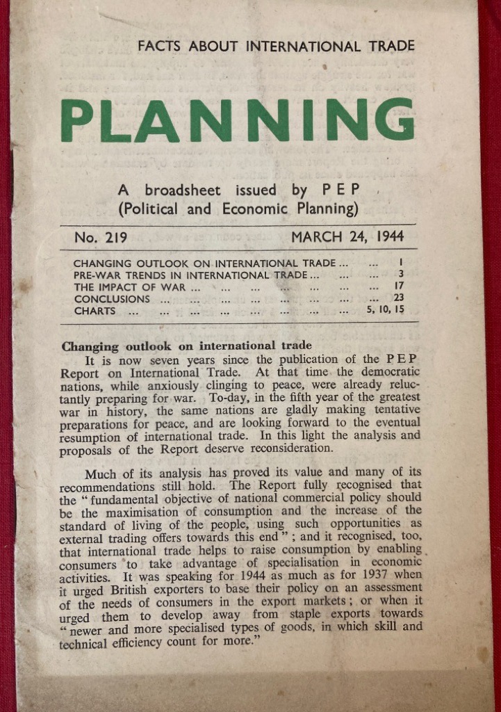 Publisher: London: Political and Economic Planning 1944. (PEP Broadsheet Planning)
