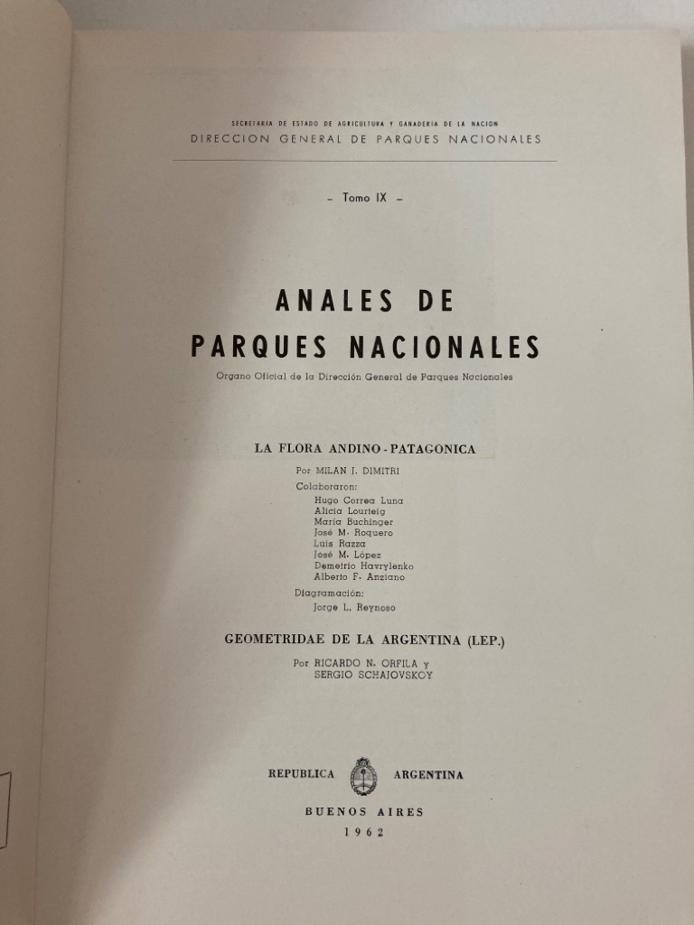 Publisher: Buenos Aires 1962. (Anales de Parques Nacionales.)