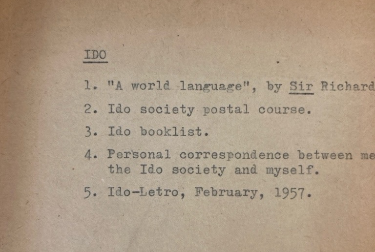 Description: this is a folder containing correspondencen between the Secretary of the Private Libraries Association and Alfred Haffenden (IDO) about the benefits of the language. Approx 6 pieces of correspondence, autograph letters and typed letters, also included book-lists, order forms, receipts for payment, newsletter, etc.