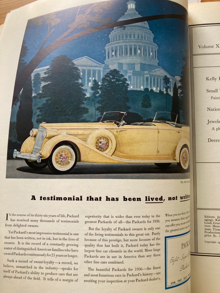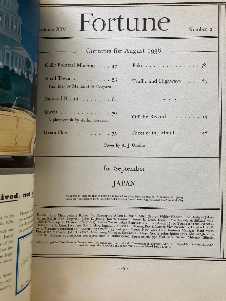 Description: 164p very large oversized paperback, folio format, colour cover by A J Grodin, many period adverts, including car adverts, essays on The Political Machine, Rochester Indiana, National Biscuit, Deere Plow, Traffic and Highways (and the theory of friction). a nice clean copy, but the essay on Polo is incomplete, having been cut up and cut out at some stage