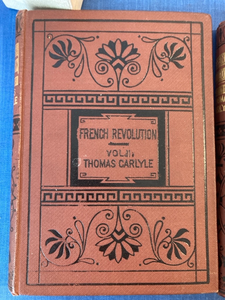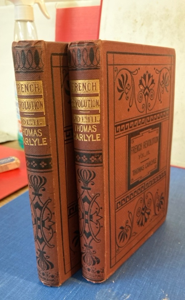 Description: two volumes, small format, terracotta cloth with bright black Greek vase style floral decor, gilt lettering to spine, name in ink dated 1885, an attractive set, sadly missing volume 1