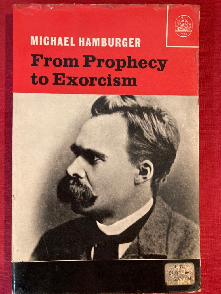 Description: 161p paperback with Nietzsche portrait, fresh and clean copy, name to endpaper, light peeling of transparent film over cover, text clean: Premisses, not premises