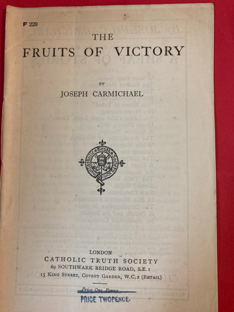 Publisher: London: Catholic Truth Society 1920. (A Sheaf of Stories.)