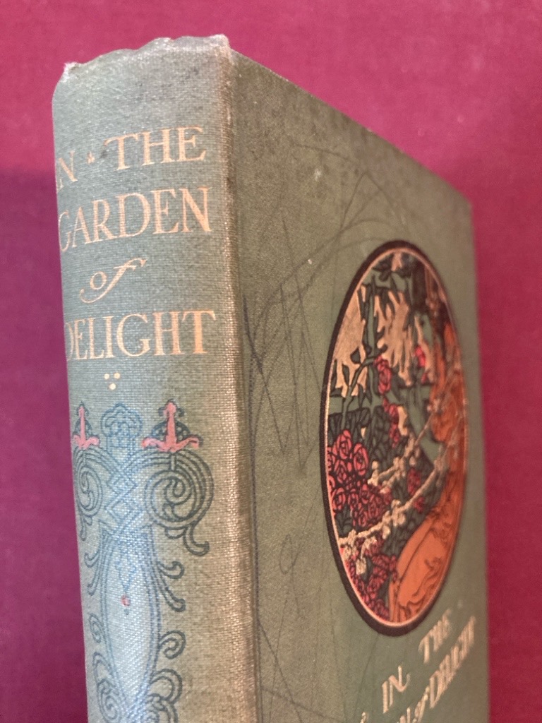 Description: 235p green cloth bright and fresh with gilt lettering and female figure among flowers, top edge gilt, title with red rules, printed with ornaments, light flaws to interior (humidity edge to colour frontispiece, pencil scribbles to a few pages and to endpaper, which also has a light defect not affecting hinge), strong paper, a nice copy with light flaws