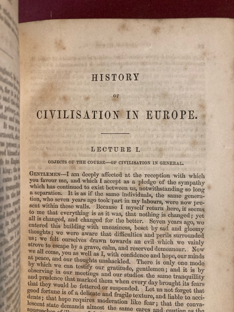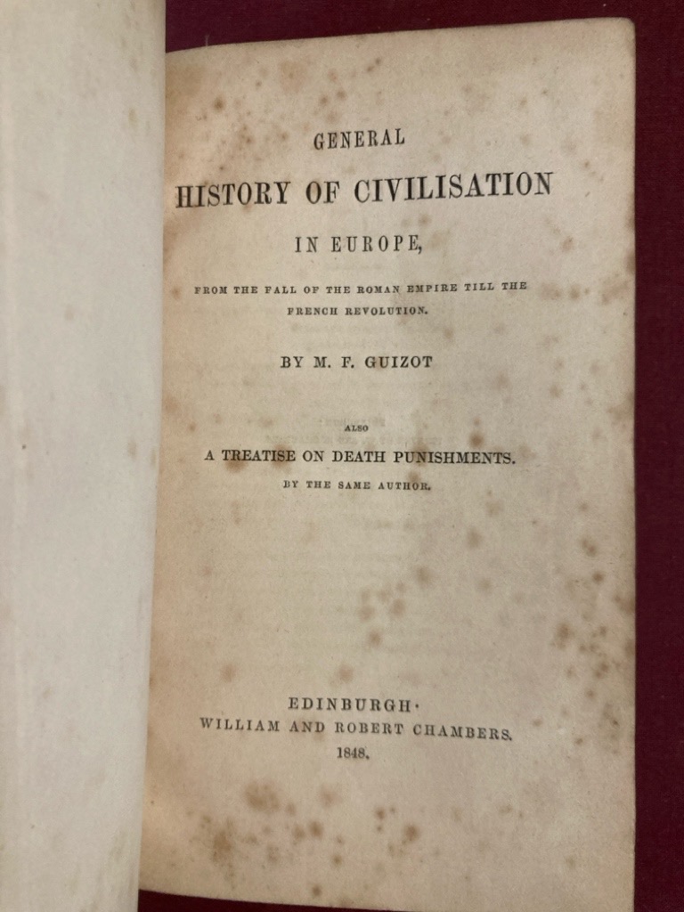 Description: xx 327p half calf binding still firm, binding firm, hinges tight, title label to spine, all edges marbled, text clean, no names or stamps, includes life of Guizot by T W Redhead, text clean