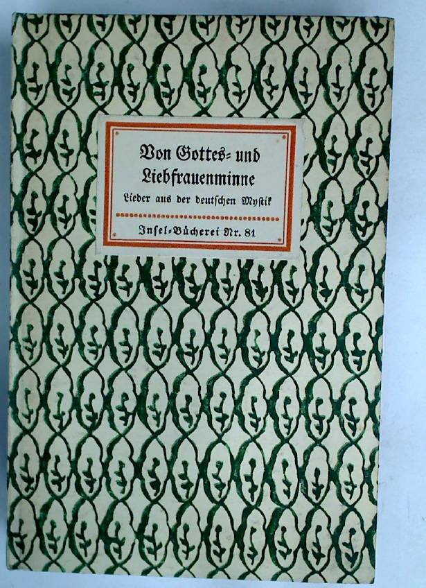 Description: 94p red patterned hardback with paper label on spine and front board, label on spine chipped off, spine sunned, name to endpaper dated 1937, pages unmarked, binding firm, Insel Bücherei Nr. 523