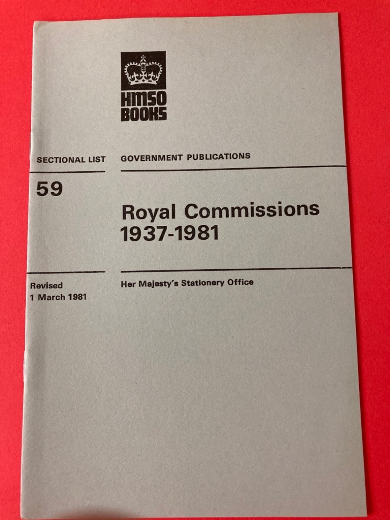 Government Publications. Sectional List No 59: Royal Commissions 1937 - 1981. Revised 1 March 1981.