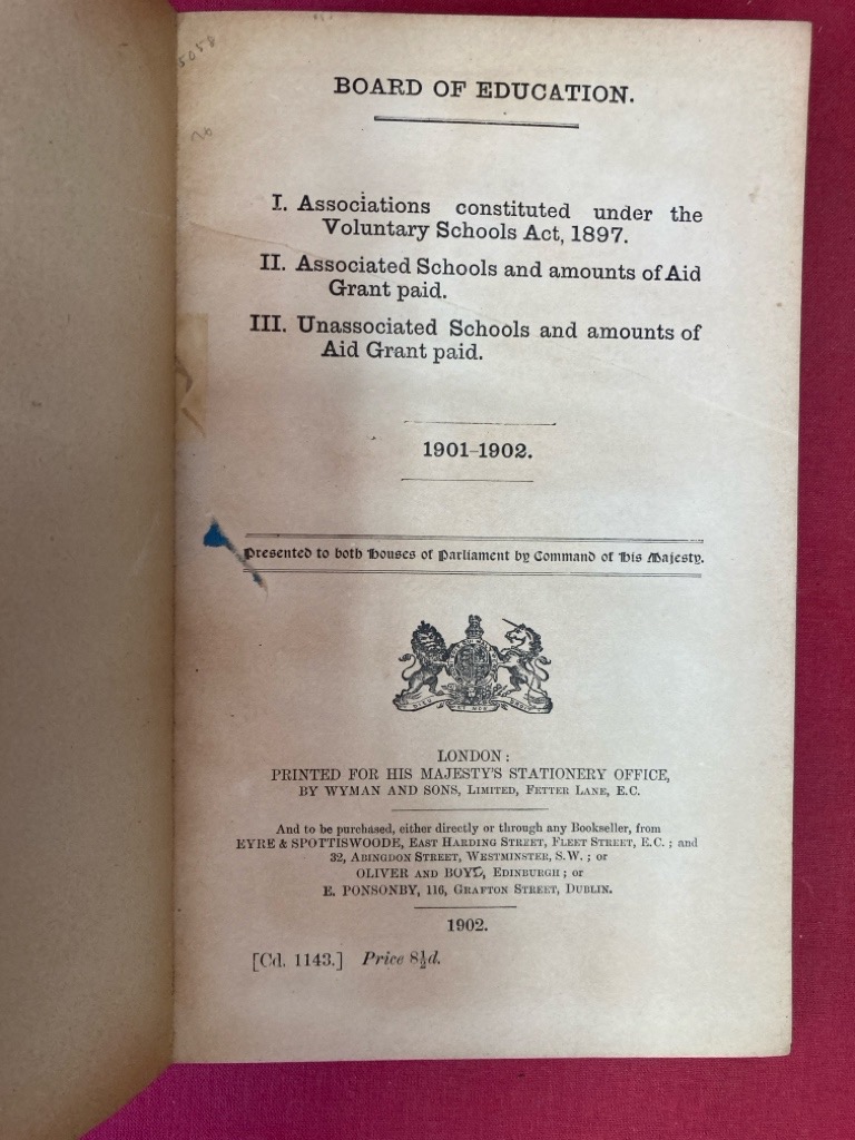 Description: xiii 159p black cloth with gilt lettering to cover, contains various tables and indices referring to aid in each county, well preserved, "For Official Use Only" (Cd 1143)