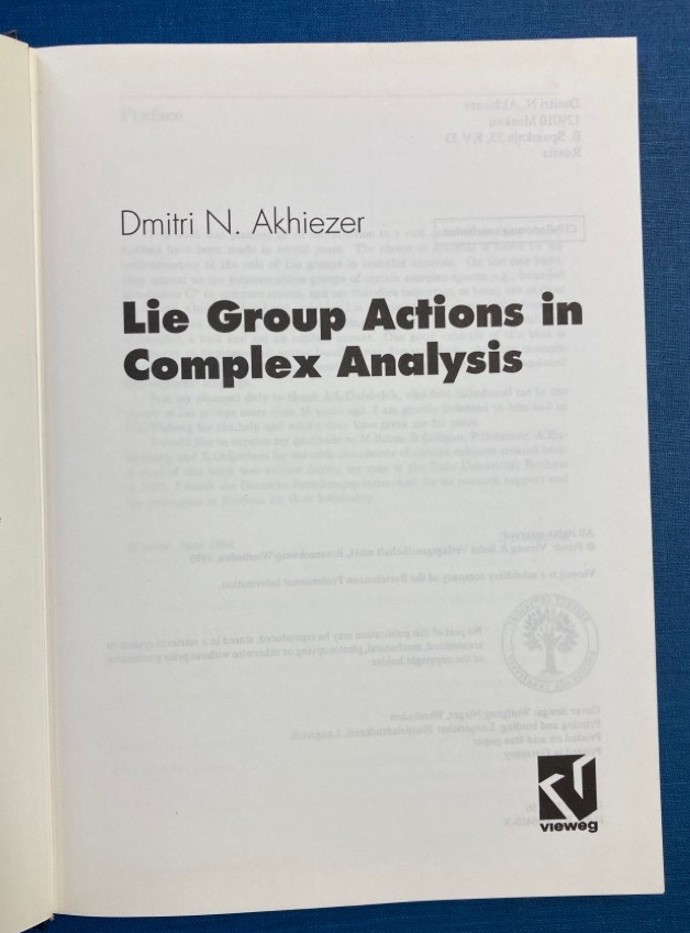 Publisher: Wiesbaden: Vieweg 1995. (Aspects of Mathematics.)