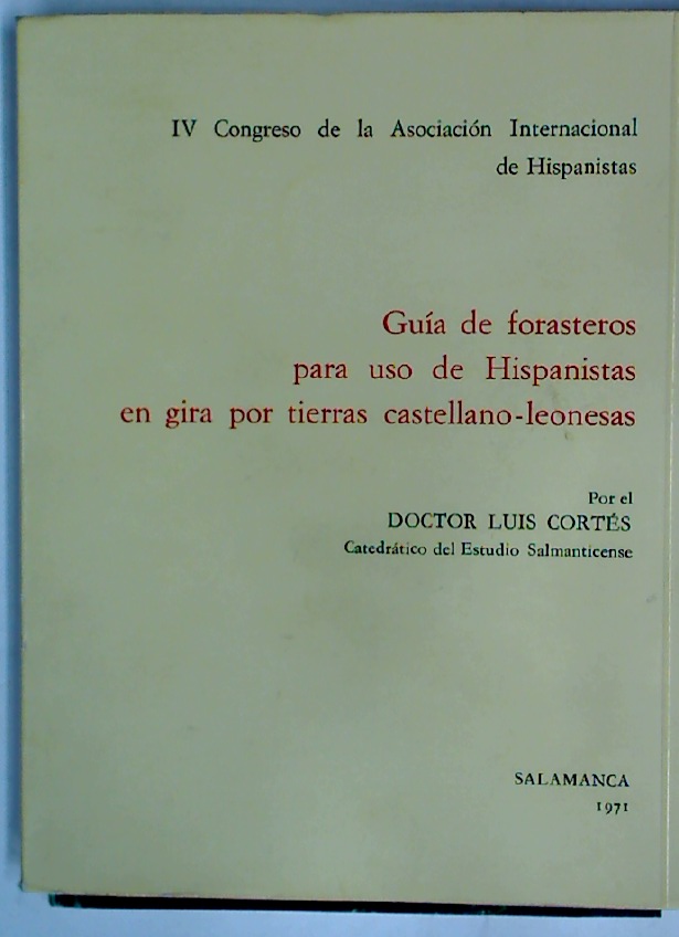 Description: 28p small format, ivory card cover, issued for the IV Congreso de la Asociacion Internacional de Hispanistas, 1971