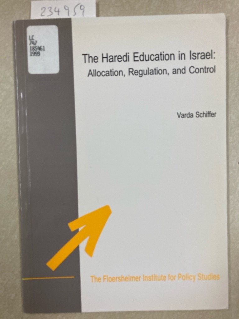 Description: 39p tall format booklet, fresh clean copy. library shelfmark, never used, title page reads: Haredi educational in Israel.