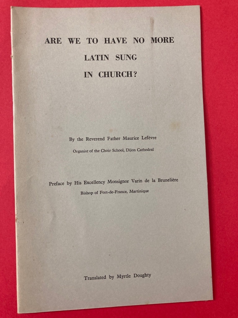 Description: 15p stapled booklet, grey paper cover, preface by His Excellency Monsignor Varin de la Brunelière, well preserved, staples a little rusty, uncommon title
