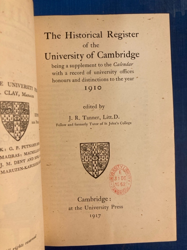 Publisher: Cambridge University Press 1917.