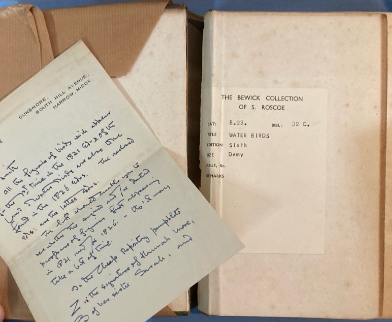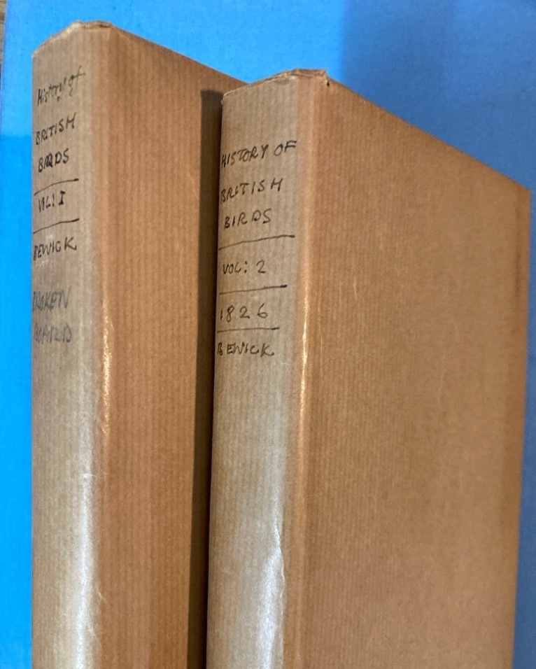 Description: two volumes bound in full green calf, spine with two title labels, one volume has suffered a a "broken board" (as noted in pencil on the simple Kraft paper jacket) such that the endpaper severed along the hinge, but the leather hinge itself is still intact, spine a little browned but nice, note stating that these volumes belonged to the Bewick collection of S Roscoe, inserted is also a letter by Roscoe dated 1952. Name in faint pencil, no stamps, nice pair