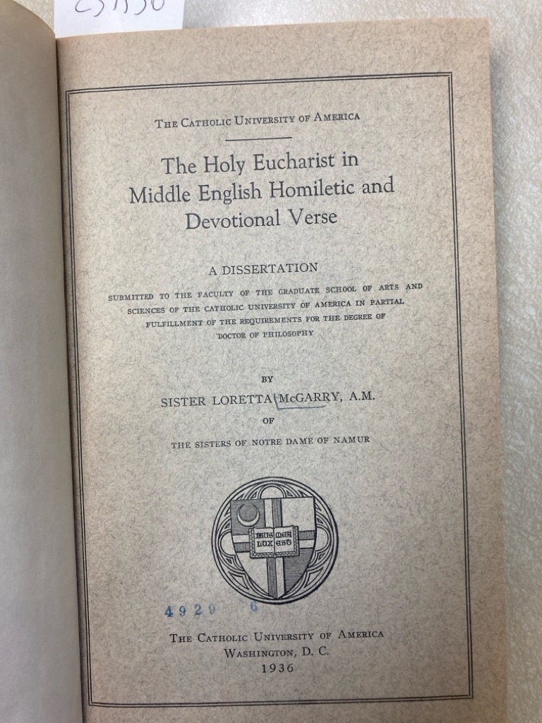 Publisher: Washington: Catholic University of America 1936.