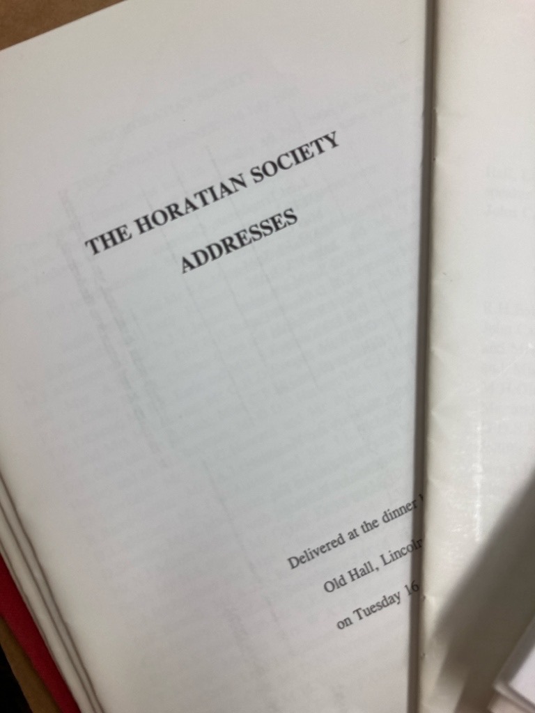 Description: 12 stapled booklets with addresses on Horatian topics, all clean, some with illustrations, list of members