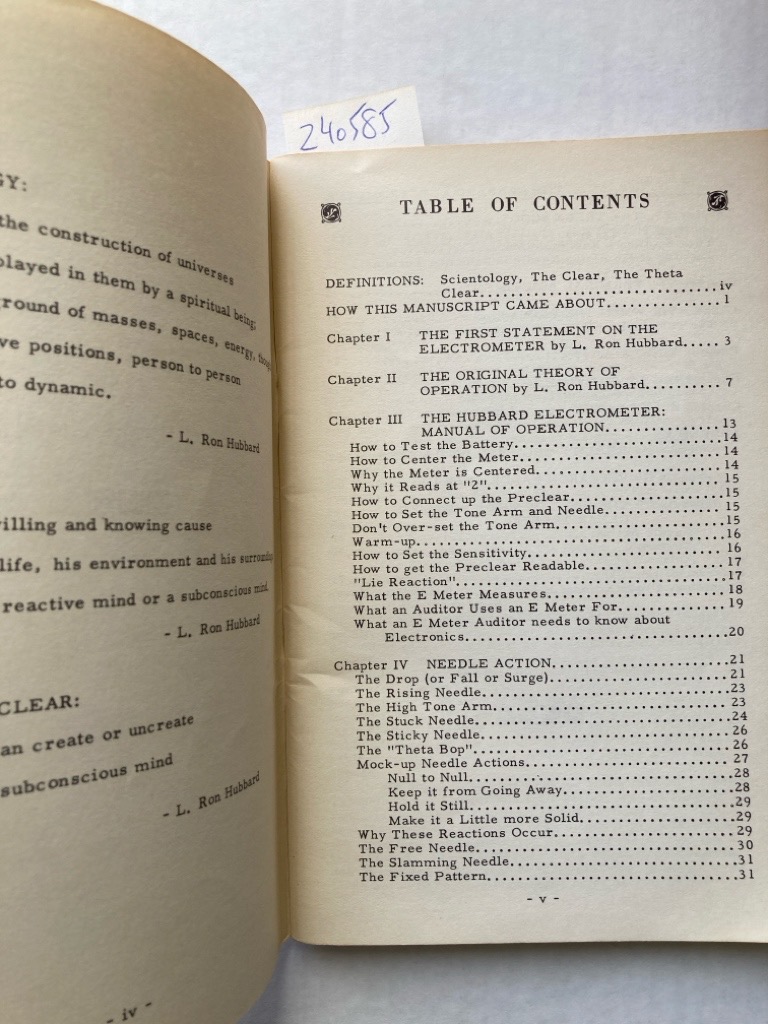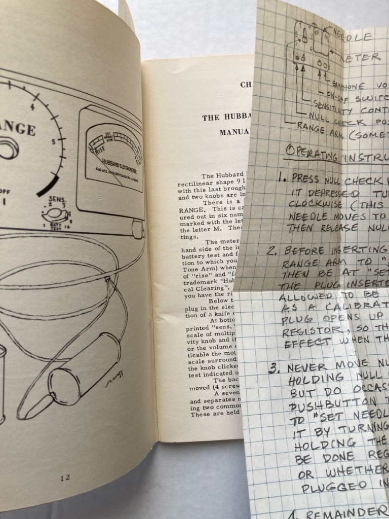 Description: 74p stapled paperback booklet, blue cover with black lettering, first edition, text reproduced from typescript, extensive notes in neat pencil hand on inserted sheet dated 1961, with illustration, listing of Hubbard books in the back, name in ink to title, this is a clean and firm copy, very well preserved
