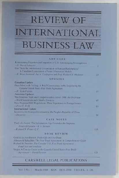Description: this is a 15 page essay published in the Review of International Busines Law, for sale is the entire issue, with many other essays
